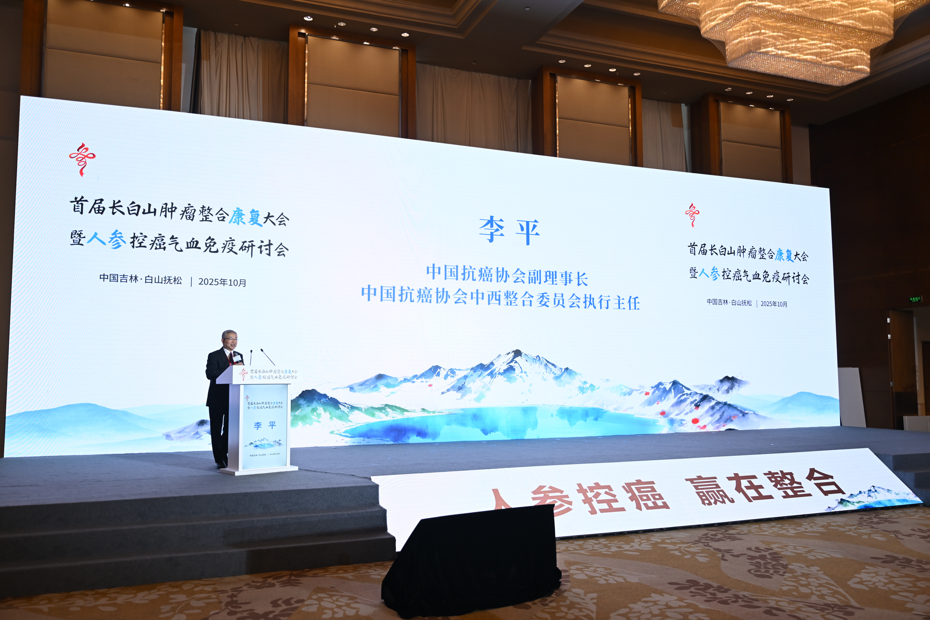 开幕式上,中国抗癌协会抚松人参控癌研究专项正式启动,中国抗癌协会与抚松县人民医院等四家医院举行了“肿瘤学科赋能专项启动仪式”,白山市抗癌协会成立,为中医药与现代医学的深度融合开辟了新路径。 主旨报告环节,樊代明院士分享了《整合健康学》的学术洞见,汤钊猷院士以《中国式控癌》为题深入探讨了中国特色的癌症防控策略。抚松县副县长李斌介绍了抚松县人参产业的发展现状与展望,师建国教授、李平教授分别就《人参控癌与气血免疫“靶/态”治癌》《提升免疫检查点抑制剂疗效的中西整合方案的建立与实践》进行了精彩分享。《肿瘤整合康复长白山宣言》也在大会期间正式发布。