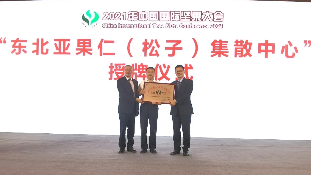 近日,2021中国国际坚果大会在浙江省杭州市举行,会上,国家商务部驻杭州特派员办事处副特派员周关超、中国食品土畜进出口商会会长曹德荣向梅河口市商务局局长王陈雷颁发了“东北亚果仁(松子)集散中心”牌匾,这标志着梅河口市又增加了一张亮眼的“产业名片”。 地处吉林省东南部的梅河口市具有得天独厚的交通、流通优势,正在成为辐射周边的商贸物流中心,果仁(松子)产业基础雄厚。经过40余年的培育,梅河口市松子产业逐渐壮大,先后被国际树生果仁协会确认为“亚洲最大果仁加工集散地”,被中国食品土畜进出口商会认定为“中国松子加工集散中心”,2017年获批为“中国出口果仁质量安全示范区”,2019年获得“中国松子美食地标城市”称号,2020年获批为“国家外贸转型升级基地(果仁)”。