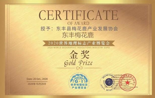 “东丰梅花鹿”获2020年世界地理标志产业博览会金奖