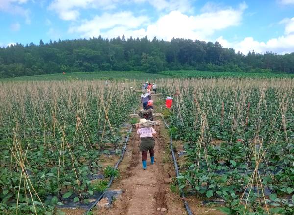 盛夏时节,蔬果飘香。梅河口市牛心顶镇的120亩紫裤架杆茄子相继进入采收期,迎来销售旺季。镇村干部一起发力帮助种植户采收、销售。 一大早,自兴村百亩蔬菜种植基地里,村民们就开始忙碌起来,他们正在技术员的指导下,挑选成熟度好的茄子,逐一进行采摘。放眼望去,40亩茄子地里,黑亮饱满的茄子一行行、一株株齐整整地排列着,长势格外喜人。 “这茄子下来得早,个大鲜嫩,耐存放,采收时间长,眼瞅着大丰收。我们自家园子里也种了一些,今年多收入个三四千不成问题。并且,这段时间我来基地摘茄子,每个月还能挣上2000多元。”种植户安云林边摘茄子边开心地说。 就在这时,收购商梅河口市百川农业有限公司的工作人员也来到茄子采摘现场,对分拣好的茄子进行过秤、装车,抓紧时间将最新鲜的茄子送到商超,送到百姓的餐桌上。 一名镇干部介绍说,自兴村的茄子产业采取以销定产的经营模式,与梅河口市百川农业有限公司签订购销合同,实行订单销售。栽植茄子破除传统的栽植方法,采用大垄双行、滴灌覆膜、搭生长架的栽植方式,极大地提高了茄子的质量和产量。全镇共栽植紫裤架杆茄子120亩,每亩可产茄子1.5万斤,预计能够为村集体增加收入20万元,村民户均增收3500元。 这边茄子喜获丰收,那边马铃薯(俗称土豆)节节拔高,花香四溢。 走进陈家村110亩马铃薯地,一眼望不到边,紫色的花朵竞相开放,深绿色的马铃薯秧衬托着淡紫色的马铃薯花,煞是好看,随风还飘来阵阵花香。正在给马铃薯起垄覆土的种植户哈恩明介绍说:“开紫花的马铃薯是尤金马铃薯,马铃薯口感干面,维生素C含量高,适合搭配多种蔬菜,是最受百姓欢迎的品种。”再有一个月的时间,这片晚马铃薯也将迎来收获的季节。目前,村里正认真谋划二茬菜的种植。 乡村振兴,产业先行。今年,牛心顶镇紧紧抓住“农业产业突破年”的有利契机,围绕市“十百千万”工程和镇村“双百”“双二百”工程任务要求,因地制宜、因村施策,不断调整产业结构,除了发展马铃薯、白菜、茄子等6000亩蔬菜种植外,还在发展特色养殖业上下功夫,在全镇大力发展肉牛养殖。 整合资源,打造“牛经济”。镇里成立农业产业工作专班,镇领导多次带队到域外学习考察,到农户家中走访调查,积极争取工商资本下乡,逐步探索出一条“支部+公司+农户”的肉牛养殖业发展路径。 在市委统战部的倾力帮助下,由陈家村村集体、梅河建设集团、陈家村农户三方投资建设的陈家村肉牛养殖场正式挂牌开业。养殖场利用陈家村闲置校舍改建,总投资210万元,总占地面积1.2万平方米,改建牛舍1500平方米,新建遮阳棚270平方米,饲草棚180平方米,贮尿池8立方米。养殖场由陈家村村集体统一管理,聘请责任心强、经验丰富的饲养员负责肉牛的日常喂养和看护。目前,已购进肉牛110头,年底可实现300头肉牛的养殖目标,预计能实现村集体增收10万元,农户年均增收3000元。 在陈家村的示范引领下,全镇共有7个村已经确定好肉牛养殖场地,向阳村、三里村等3个村正在修建牛舍。镇里还积极鼓励农户发展庭院肉牛养殖,全面落实肉牛养殖贴息贷款、肉牛保险等各项惠民政策。目前,全镇共有360户农户利用自家庭院饲养肉牛2788头,牛保险实现全覆盖,为52户养殖户办理免息贷款260万元。 “今年的政策就是好,政府上门帮我们贷款,每个月还来给牛上一次保险,解决了我们的后顾之忧。”三里村肉牛养殖户尚德发高兴地说着。 种养业齐头并进,蓬勃发展,农民干劲儿十足,喜笑颜开, 一幅“”产业兴、农民富、乡村美”的振兴画卷正在牛心顶大地徐徐展开。 |