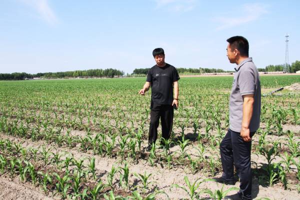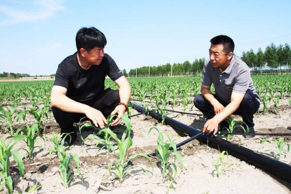 足足一个月时间,刘占海跑银行协调贷款,落实资金难题,并下决心要把这个产业做成、做大、做强。随后,又同订单合作企业周旋回收价格、在田间铺设滴灌设备、组织机械种植、查看苗情…… 6月18,刘占海来到田间,喜人的玉米苗让他一遍遍看不够。用手扶着宽大的叶片,就像抚摸自己孩子一样,心中充满喜悦。 “大龚双行种植就是有技术含量,行距0.5米到0.8米,通风好、长得快。水肥一体化滴灌还可抵御旱情。这12公顷粘玉米,今年订单回收价格是每吨1500元,预计收获74万穗、实现销售收入40万元。这些收入,我们决定用于村公益事业,投入农村养老大院建设。8月15日这茬粘玉米收完,再复种普通玉米,由于生长期比第一茬要短,用于青储销售,1公顷还能收入1万元。”掰着手指算起致富账,刘占海很看好收获前景。