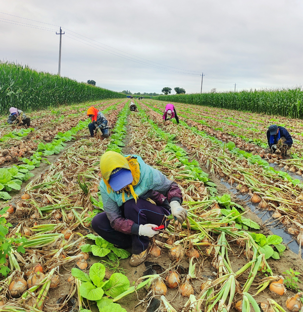 立秋将至,镇赉县黑鱼泡镇早早就拉开了“秋收”序幕。自8月1日起,位于三家子村的复式种植产业示范区,270亩圆葱迎来丰收季,圆葱、白菜、西兰花——这“一地三种、一地三收”中的首轮收获快速推进。 8月6日,晨曦中,人们在“葱”满希望的田野上,开始拔葱头、剪叶鞘、预分拣等一系列劳动,忙碌并享受着丰收的喜悦。 采收的村民经过一番熟练操作后,葱叶与葱头被有序放置田间。接下来,只待阳光充足,将割好的圆葱晾晒至表皮硬脆,除去泥土后集中装袋、储存。而那些与圆葱套种的白菜和西兰花,依然茁壮生长,迎接新收获季的到来。 “今年,咱们村圆葱丰收啦!这一个个圆葱白胖胖的,单个重量普遍超过1.2斤,剥了葱皮儿吃上一口,又水灵又甜。一天收一亩地,能有200块钱的收入呢!”腰那屯65岁的王少怀干劲儿一点不比年轻人差,拿着刚收好的圆葱十分开心。 “我家今年种了1.5公顷圆葱,一公顷产量17万多斤。齐齐哈尔市客商来到地里就相中了,马上定购1公顷的圆葱,今天下午就能运走4万斤。” 种植户崔洪研喜悦之情溢于言表。 下午3点,齐齐哈尔市客商的大卡车驶入示范区,一袋袋圆葱在传送带上雀跃着进入车厢。 目送满载圆葱驶出村庄的卡车,想到小圆葱们也能跨省“行动”,即将出现在省外百姓的餐桌上,村党支部书记谭国柱笑逐颜开:“全村圆葱采收预计8月中旬结束,总产量可达450万斤,以黑龙江和山东等地的客商进村收购为主要渠道。目前,市场收购价每斤0.6元左右。” 圆葱收获后,在同一地块上套种的西兰花、白菜等作物10月份将陆续收获,进入各大商超。 近年来,镇赉县镇村干部坚持“藏粮于技,藏粮于地”的理念,大力推广实施水肥一体化,盘活土地资源,突破传统种植、调整农业结构,发展复式种植等特色农业,有效提升农田综合生产力。通过两年不断推广宣传和实践,特色种植产业发展硕果满枝。 |