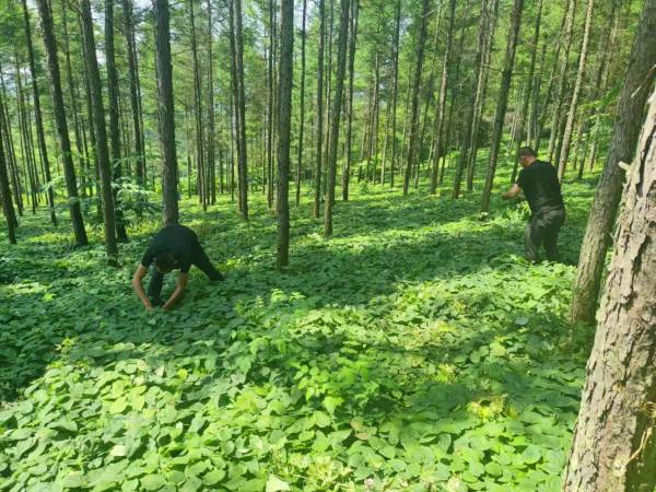 郁郁葱葱的三枝九叶草 组织引领,带动发展。马家东沟党员发展林下经济成功之后,村党支部经过研究,决定带领群众发展林下经济。村干部挨家挨户做工作,宣传发展林下经济的政策和有关知识,介绍林下经济发展模式和种植经验,引导大家放开手脚发展农业生态经济。于是,村民们纷纷行动起来,五味子、三枝九叶草、软枣子、龙须菜等林下经济作物如雨后春笋,迅速发展起来。 人勤物丰,青山生金。种植户杨青秋介绍说:“我种三枝九叶草两年多了,赶上市场价格好,一斤能卖到60元。现在家里种了3亩地,收入达到40余万元。”