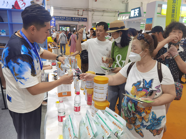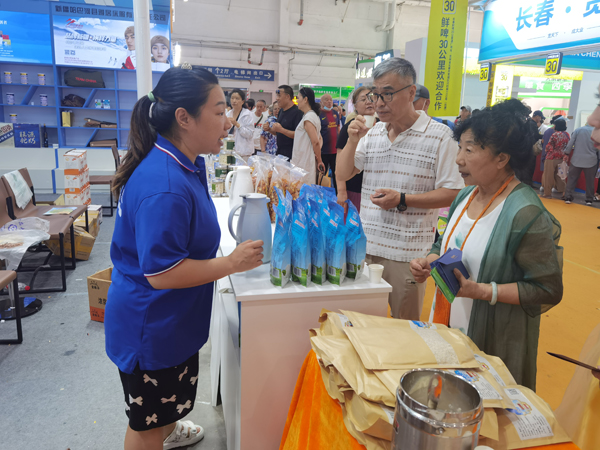 “大家先尝一尝我们的产品,一共两种口味炒货,分礼盒装、家庭装和日常休闲装,绝对的原汁原味新疆特产。”8月22日,在长春农博会3号馆吉林援疆展位,新疆阿勒泰地区福海县丰吉尔食品有限公司参展代表王斯恩,大声地向一波又一波顾客热情介绍着。 “看起来卖得不错呀!” 顾客刚见少,记者便表明身份、见缝插针地询问。 “可不是嘛!刚来时我们心里也没底,只带了18箱货。这几天给我们忙的,切片已经卖断货了,紧急补过一次还是不够卖。我们的黑麦列巴、4种馕简直都成了‘网红’产品,受到顾客的广泛追捧。”忙碌之余的王斯恩显得既兴奋又开心。 一旁新疆阿勒泰哈纳斯乳业有限公司的销售代表孙海祥也一直没闲着,驼奶粉、沙棘汁、驼奶片迅速被“抢购一空”,于是赶忙打电话和厂家“告急”。 “吉林省援疆指挥部为我们搭建这么好的平台,其实这相当于对我们新疆企业产品进行最好的宣传推广,真是太棒了。”孙海祥感慨道。 作为吉林省第五批援疆人才,接到吉林省援疆指挥部委派,胡佰策和相关同事专程回来进行布展,目的就是为了更好地宣传新疆阿勒泰。 看到展位产品被销售一空,胡佰策直呼没想到。 “特别要感谢吉林省对口支援新疆工作前方指挥部提供这么大的一个平台,此次我们阿勒泰地区10家农业产业龙头企业携100余种农牧产品亮相长春农博会,希望通过展会打开阿勒泰地区农副产品在国内外的市场,让更多阿勒泰地区优质农产品走出新疆,叫响全国。”阿勒泰地委委员赛力克·马哈提动情地说。 |