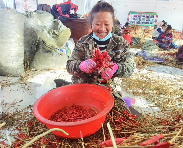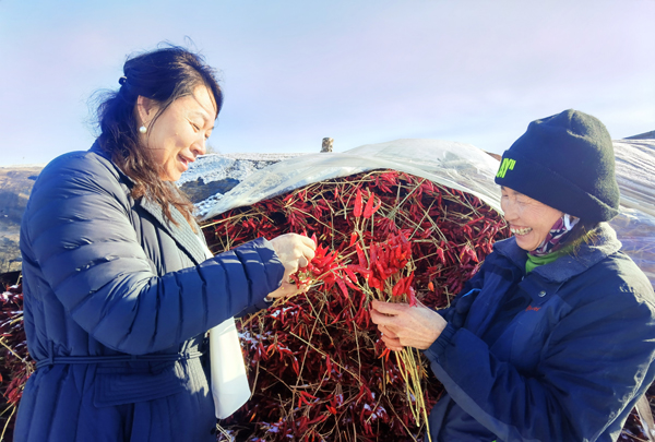 “你瞅瞅,这朝天椒多带劲,现在价格十块五一斤,还能涨。照当下这行情,一公顷收入也是玉米的好几倍!”11月16日上午10点,在双辽市卧虎镇前六家子村党支部领办的大润吉秋种植专业合作社内,村党支部书记王艳秋顺手拿起地上一棵满是朝天椒的辣椒秧,向前来调研的镇长孙志成兴奋地介绍。 温暖的屋子里,10多名本村妇女有说有笑,忙着摘辣椒。此时,冬日的阳光透过窗户照射在朝天椒上,瞬间映红了村民的笑脸。 家门口“红火”的朝天椒路,是“领头雁”王艳秋带领村民敢闯敢试“蹚”出来的。 今年,前六家子村因地制宜发展朝天椒种植。“老百姓只有赚到钱,才能跟着你干。”王艳秋深知这个道理。为了得到大家信任,她自掏腰包带着村里人到长岭、前郭等地考察,还拿出自家2公顷地做试验田,成立了由村党总支部领办的“大润秋种植合作社”,承担了建设35栋大棚的全部费用。 紧接着,村里自行培育椒苗和种植成椒,1400万株椒苗如期栽进孕育希望的土地…… “从春天育苗就开始在这干活。进入冬季,闲着也是闲着,就近务工,一天能挣100多块钱,回家还能照顾家里人,上哪找这好事儿啊!”51岁的村民张素华说起自己快乐的“工作”,笑容不自觉地爬上了脸颊。 听着村民畅谈,王艳秋笑逐颜开地盘算起收入小九九。“今年,全村40公顷朝天椒产量大概33万斤,村集体增收50万元不在话下,120户农户增收180多万元已成定局。除此之外,还带动就业30多人。” 依托小辣椒,激活“大产业”。 推开村民陈静家的院门,几“垛”摆放整齐的朝天椒红彤彤格外显眼。见大家到来,陈静忙迎了出来。“现在辣椒行情不错,不过王书记说价格还能涨。我们听书记的,她说卖我们就卖。”说着看向王艳秋,眼神里满是敬佩。 “今年,在王书记指导下,我种了1.9公顷朝天椒。按目前行情,一公顷能赚六七万元,这日子想不红火都不行。”看得出,陈静心里有数不尽的喜悦。 “合作社今后将继续扩大朝天椒种植面积,把朝天椒打造成拓富增收的大产业,先让前六家子村老百姓的日子红火起来,再辐射带动其他乡镇村屯……”聊起这“火辣事业”,王艳秋笃定的目光望向远方。 |