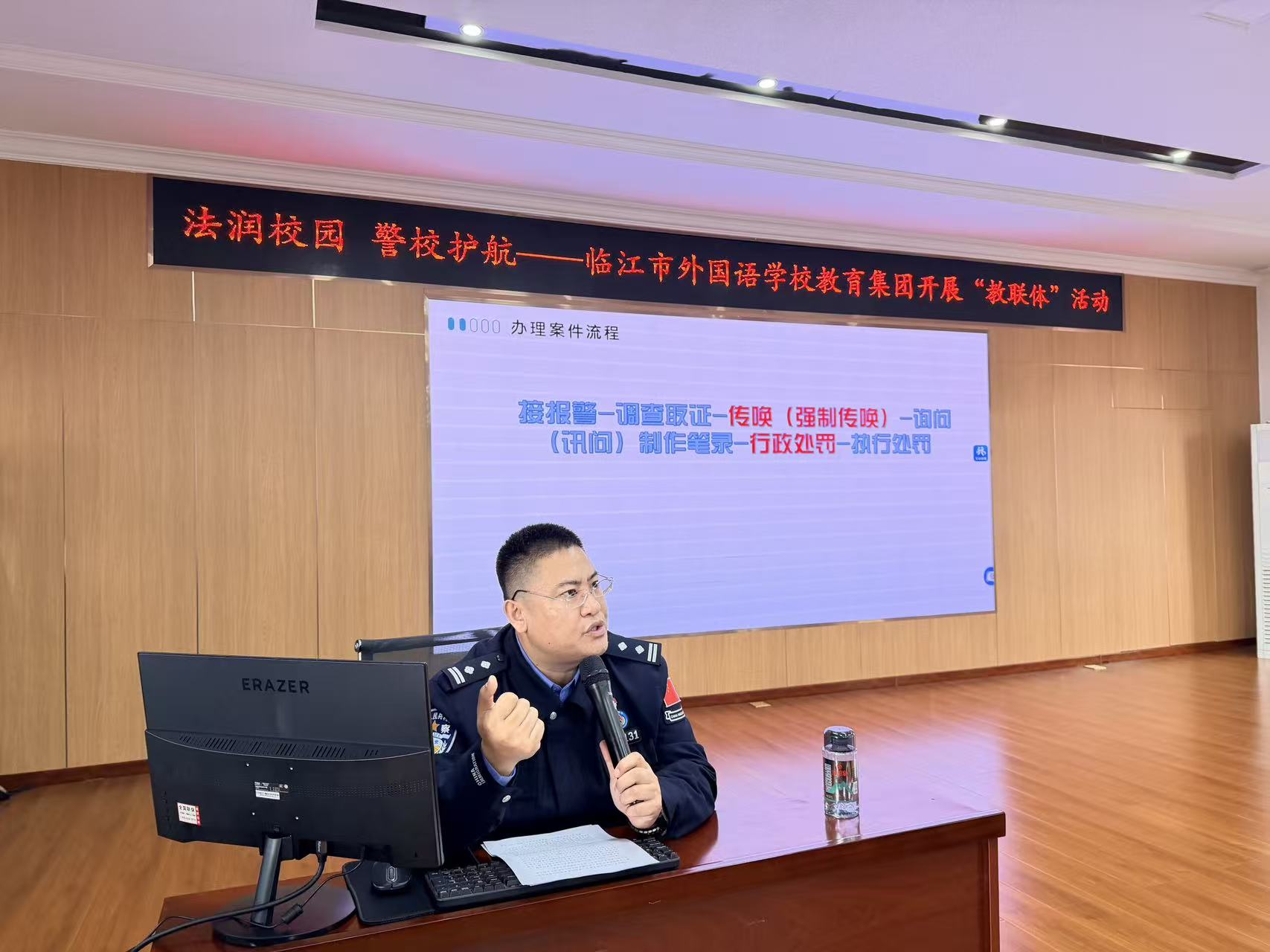 “法律就像界定我们行为的一条‘不可逾越的边界线’,越过了就要承担法律责任......”11月4日,临江边境管理大队建国边境派出所所长赵旭烨同志来到辖区临江市外国语学校开展“法润校园 警校护航”法律宣讲活动,为广大师生带来一堂精彩纷呈的法治教育课,进一步增强师生的法治意识和安全意识,提升自我保护能力,营造浓厚的法治宣传氛围。