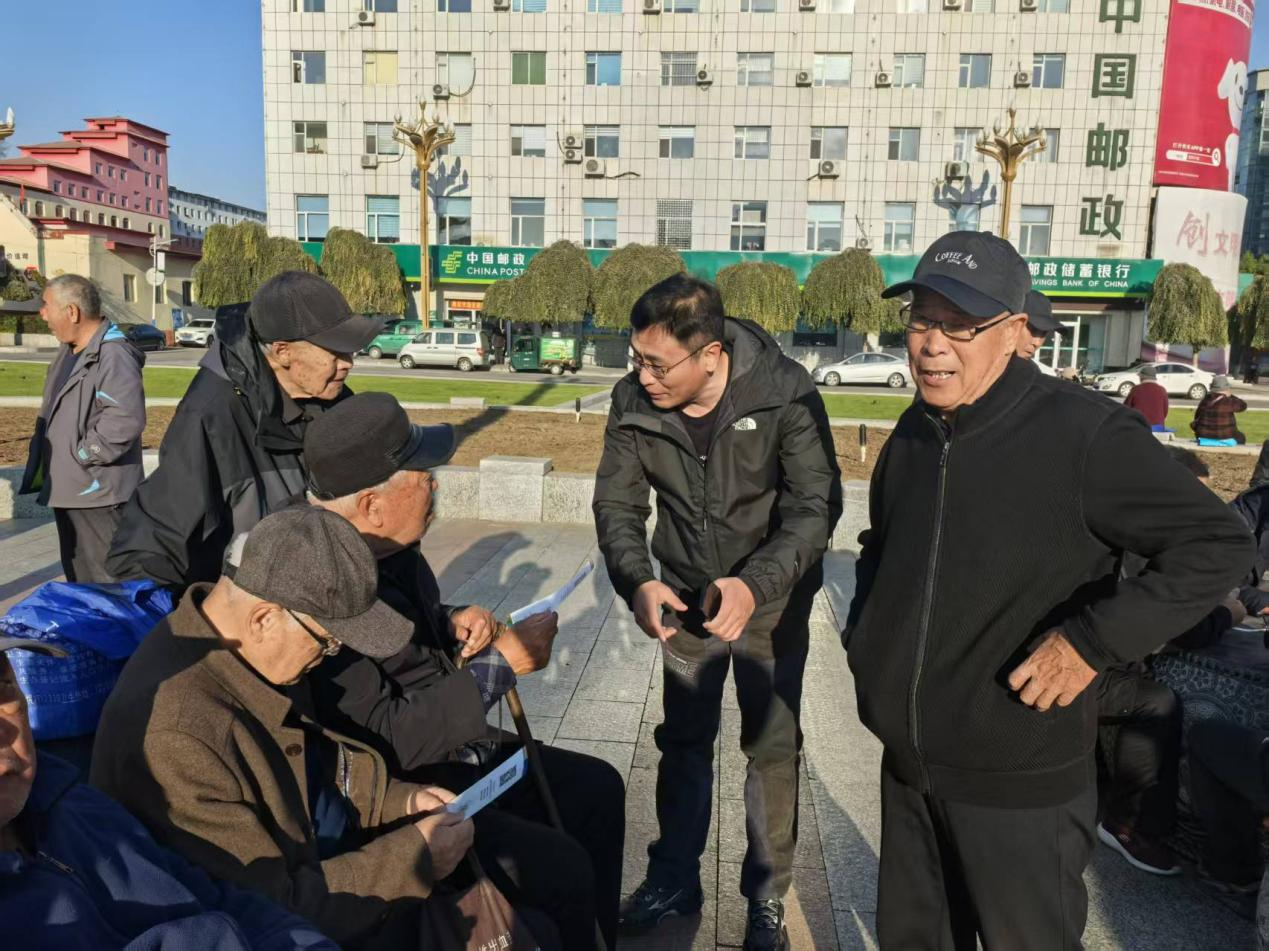将社保政策宣传与城市环境卫生整治同部署、同推进,组织12人志愿团队进驻包保的解放社区,同步开展环境清理与政策宣讲。志愿团队累计清扫小区公共区域8处、楼道15个单元、停车场2个,清除垃圾死角9个,发放创卫倡议书300余份,引导居民共同维护社区环境。其间,政策宣讲员走进楼栋,向居民宣传垃圾分类标准、健康生活常识,同步讲解社保缴费档次、待遇领取条件等民生政策,现场解答居民疑问53个,实现“环境美”与“政策明”双向提升。