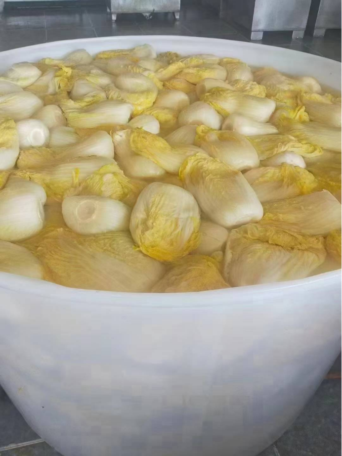 技术创新体现在多维度工艺优化:采用自主研发的酸菜专用黄心菜品种,结合传统工艺与弱碱性深井水,通过精准控温18度环境下嗜酸乳杆菌发酵120天,有效降解亚硝酸盐;配合植物乳杆菌与异维C纳二次发酵工艺,不仅去除有害菌群,更提升必需氨基酸及维生素含量。经此工艺制成的酸菜,风味醇厚、质地脆嫩,较自然发酵产品更耐保存,且具有调节胃肠微生态、降低胆固醇、增强免疫力等健康价值。
