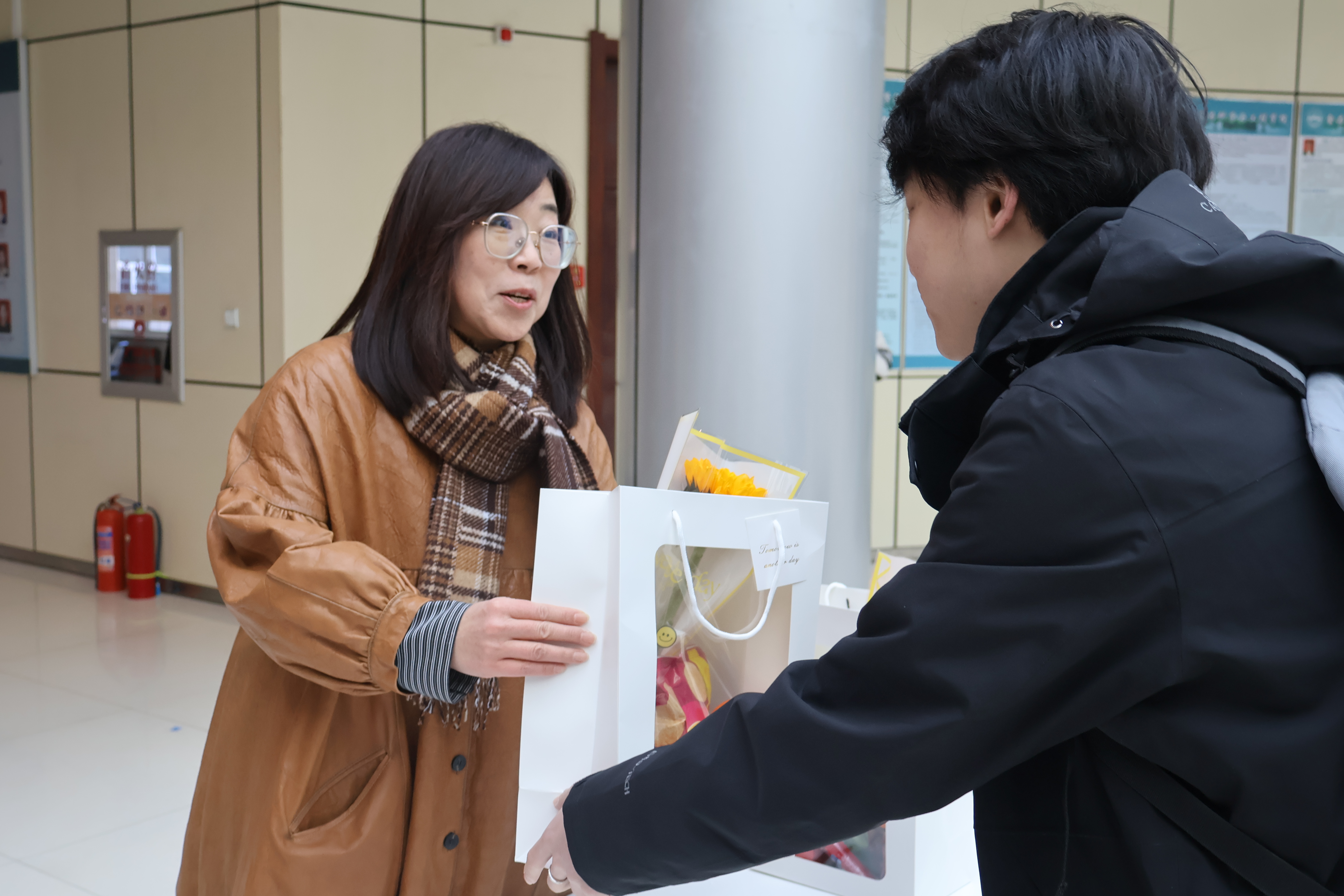 活动中,老师为考研学子一一送上装有美好寓意的“暖心礼包”。礼包中每件物品都承载着学院的深情寄语:橙子寓意“前‘橙’似锦”,向日葵祝福“一举夺‘葵’”,旺仔牛奶象征“好运‘旺旺’”,可乐代表“百事可乐”,乐事薯片期盼“乐事连连”,士力架助力“力克难题”,棒棒糖则祝愿“棒上有名”。这些别具巧思的礼物,既实用又暖心,凝聚着全院师生对考研学子的真挚祝福。