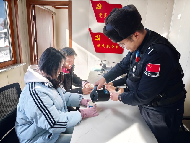 变被动管理为主动服务,将执勤民警作为冬季护游的前沿窗口,健全快速响应机制,做到游客求助“零推脱”、涉旅警情受理“零积压”、与游客沟通“零距离”,第一时间为游客解决燃眉之急。“护游”民警还提前制定应急救助预案,在景区设立临时救助点,配备急救药品、防寒物资和应急工具。元旦以来,民警先后为多名游客提供救助。在边境检查站执勤卡点,党员先锋岗持续释放服务效能,热气腾腾的开水、细致入微的咨询指引,成为寒冬里最贴心的慰藉。