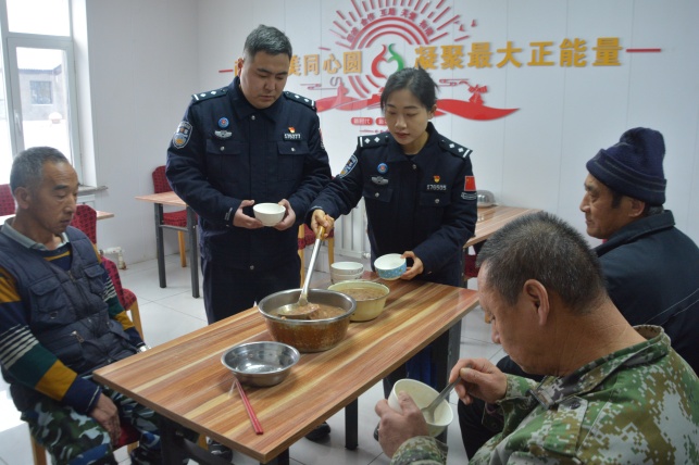1月21日,在腊八节来临之际,白山边境管理支队临江边境检查站联合苇沙河边境派出所深入临江市苇沙河镇敬老院开展“浓情腊八节,送粥暖人心”慰问活动,为老人们送上节日温暖与诚挚祝福,进一步密切边境地区警民关系,营造祥和温馨的节日氛围。 活动中,民警将亲手熬制的腊八粥端到老人手中,热情询问他们的身体近况和生活需求,叮嘱他们注意防寒保暖、保重身体,并提醒有困难及时向派出所反映。温暖香甜的粥羹凝聚着深情关怀,老人们连连道谢,脸上洋溢着笑容。