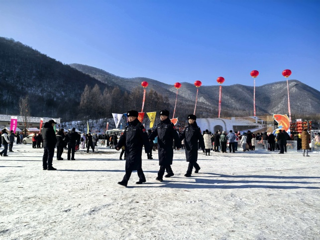 2月3日,白山市浑江区第四届鸭绿江·龙山湖渔猎文化活动在三道沟镇举行。为确保活动安全、有序开展,白山边境管理支队三道沟边境派出所提前谋划、周密部署,圆满完成此次渔猎文化节全程安保任务。 本次活动设置冬捕体验、农民大集、冰雪娱乐等多个特色环节,吸引各地游客5000余人前来打卡,沉浸式感受鸭绿江渔猎文化魅力。活动期间,面对现场人员密集、场地范围广的特点,执勤民辅警克服严寒天气影响,提前到岗到位,重点加强冬捕核心区、人群聚集区和交通要道的巡逻防控与秩序维护。在湖面“冰眼”等危险区域设置警示标识,引导游客保持安全距离,同时及时为游客提供路线指引、咨询解答等便民服务。各勤务小组紧密配合、协同作战,全程以饱满的精神状态文明执勤、规范履职,有效防范各类安全事故发生。 此次安保工作,三道沟边境派出所用扎实的举措和坚守的身影,为渔猎文化节顺利举办筑牢安全屏障,赢得主办方和广大游客的高度赞誉。下一步,派出所将持续把边境安全与冬季护游工作深度融合,为辖区文旅产业发展和群众安全出行提供坚实的公安保障。