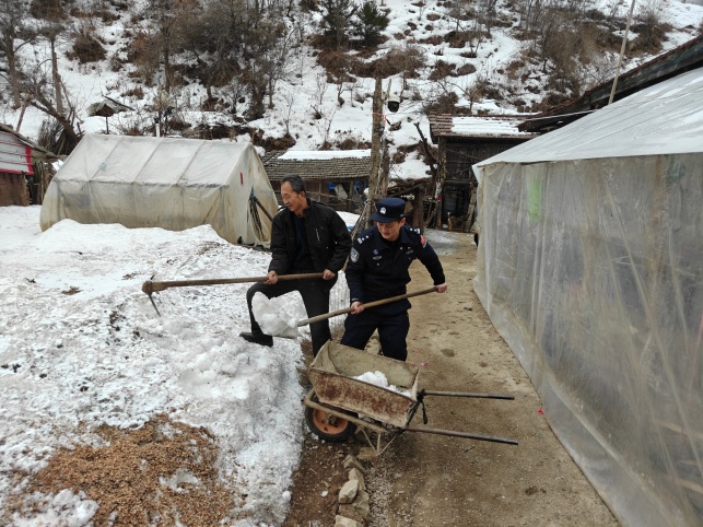 雪中送炭,做困难群众的贴心人。 初春时节,辖区内的天气依旧寒冷,部分独居老人门前的积雪和过冬的柴火成了他们心中的“烦心事”。派出所民警组成“学雷锋服务小分队”,走进困难群众和孤寡老人家中,上门开展帮扶活动。 在孤寡老人张大爷家中,民警们分工协作,挥锹抡镐,干劲十足。院内,他们顶着寒风将厚重的积雪清理干净,开辟出一条条“暖心通道”。院外,他们将散落的木柴劈砍整齐,并码放得井井有条。劳动间隙,民警们贴心地与老人唠家常,详细询问老人的身体状况和生活需求,并叮嘱老人注意用火用电安全,注意防寒保暖。看着院子里焕然一新和堆得高高的柴火垛,张大爷激动地拉着民警的手说:“孩子们辛苦你们了,有了你们,这心里啊,是真暖和!”