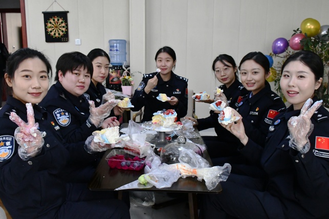 甜蜜DIY,味蕾凝聚温情 “生活需要一点甜,工作需要一份暖。”在蛋糕DIY制作现场,气氛热烈而温馨。女民警们化身“烘焙达人”,抹奶油、裱花纹、摆水果,分工协作,默契配合。精美的蛋糕在大家的巧手下逐渐成型,空气中弥漫着浓浓的奶香与幸福的味道。大家品尝着自己亲手制作的甜点,分享着工作与生活中的点滴感悟,平日里训练场上的严肃与执勤一线的紧张此刻都化作了脸上的甜美笑容。这份“甜蜜”不仅慰藉了辛劳,更极大地增强了队伍的凝聚力和向心力。