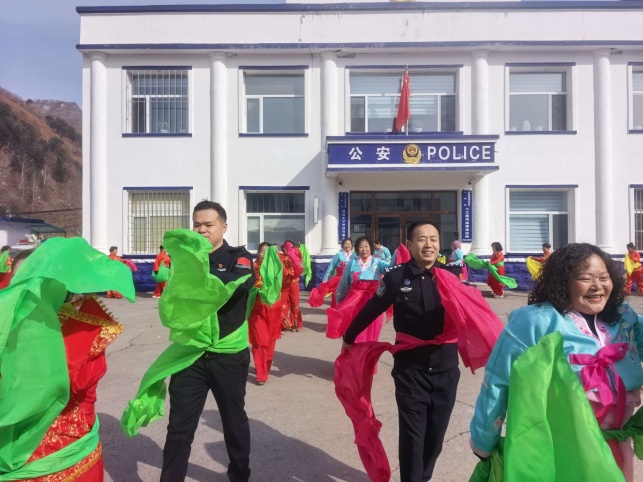 为迎接第116个“三八”国际妇女节,深入贯彻落实党建引领基层治理理念,进一步密切警民关系,丰富边疆女性精神文化生活,白山边境管理支队十三道沟边境派出所携手十三道沟林场、十三道沟村委会,以“边陲千里党旗红”党建品牌为引领,用一场充满温情与活力的文化盛宴,向奋斗在基层一线的广大妇女同胞致以崇高敬意和节日祝福。 活动当天,党旗在边陲小镇高高飘扬,警徽与民心交相辉映。民警与林场职工、村“两委”干部、妇女代表齐聚一堂,共庆佳节。伴随着欢快喜庆的锣鼓声,村里秧歌队身着鲜艳服饰,扭起欢快的东北大秧歌,舞步轻盈、动作豪迈。派出所民警融入队伍,与村民一起挥动彩扇、踏着节拍,共同演绎传统民俗文化,警民同乐的画面成为边陲春日里最动人的风景。
