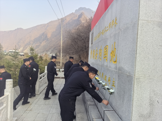 清明时节,翠柏凝春。为缅怀革命先烈,赓续红色血脉,进一步激发党员民警的爱国热情和戍边使命感,4月1日,长白边境管理大队下属的八道沟边境派出所、十一道沟边境派出所、八道沟边境检查站组成的“两所一站”党建联盟,组织党员代表赴东北抗日联军著名将领曹国安同志殉国地,开展了一场庄严而深刻的清明祭扫主题活动。 追寻红色足迹,聆听历史回响。曹国安同志殉国地位于临江市六道沟镇七道沟村,是省级爱国主义教育基地。在庄严肃穆的纪念碑前,全体党员民警肃立聆听现场教学。党建联盟负责人深情讲述了曹国安同志(原名于德俊)从青年学生成长为抗联名将,直至1936年冬,为掩护主力转移,在此地与敌血战、英勇捐躯的悲壮历程。青山不语,见证忠魂。先烈们在这片白山黑水间艰苦卓绝的斗争史诗,深深震撼了在场的每一位民警,使大家对“忠诚、担当、奉献”的内涵有了更切身的体会。