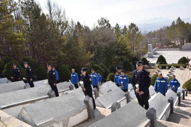 为进一步深化“边陲千里党旗红”军警地企党组织联建共建活动成果,凝聚多方共建合力,传承红色基因、筑牢忠诚警魂、夯实边陲党建根基,4月3日,白山边境管理支队十四道沟边境派出所、金华边境派出所联合长白县人武部、中铁一局松长高速04工区项目部,组织党员干部代表共同前往长白县塔山公园革命烈士陵园开展清明祭扫主题党日活动。 松柏苍翠,庄严肃穆。活动现场,全体参与人员身着正装、佩戴党徽,整齐列队在革命先烈纪念地前,全体人员低头默哀,以最庄重的礼仪深切缅怀为国家安宁、边陲稳定、人民幸福抛头颅、洒热血的革命先辈,追思他们舍身报国、坚守边疆的英勇事迹与无私奉献的崇高精神。默哀毕,大家依次向革命先烈敬献鲜花,寄托对先辈的无限崇敬与深切哀思。随后,全体党员面向鲜红的党旗,高举右拳重温入党誓词,铿锵有力的誓言回荡在现场,彰显着军警地企党员坚守初心、勇担使命、共护边疆的坚定信念。