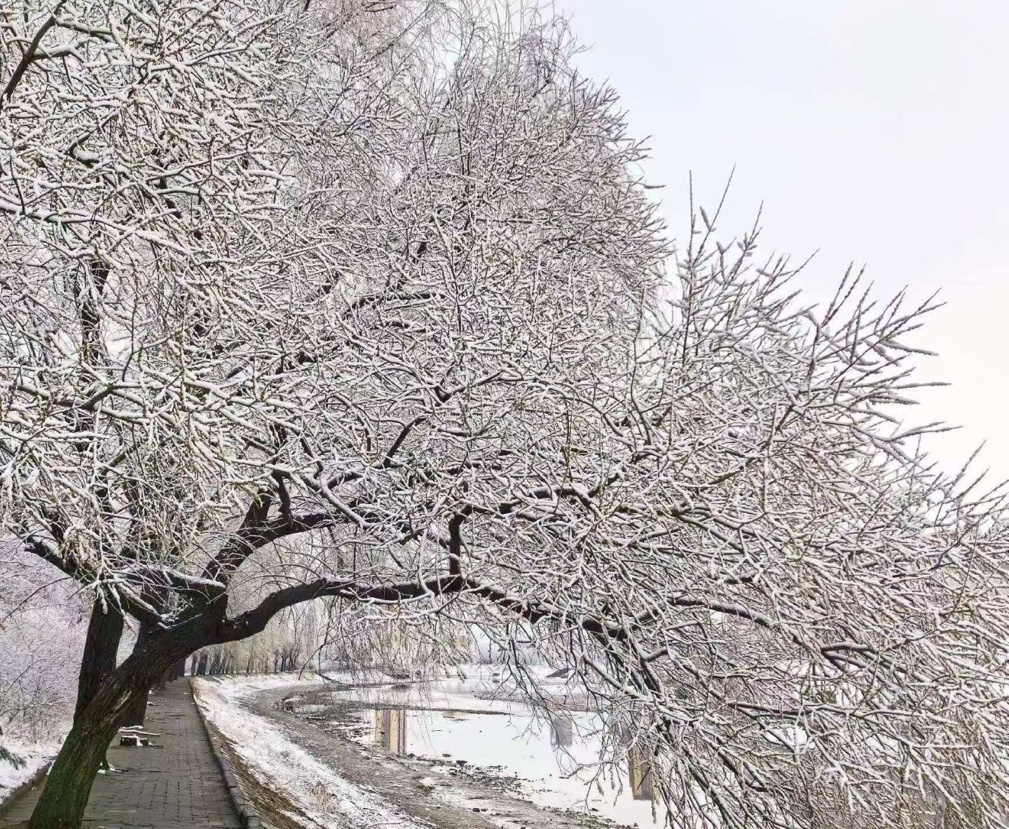 山上的树木着上银装,如同亭亭玉立的少女,走在林间甬路,自己不敢惊呼,担心他们会受到惊吓。河堤和甬路重新铺就白色的地毯,那洁白的地毯,不忍心踏上半步,怕破碎了那平整安然的姿态。 公园的长椅、凉亭,也变成白色,这种白呈现典雅和妩媚,我知道这种白是纯美和高贵。 清明,美景无数,用心看,每一处每一景都十分难得。清明有静、有动、有景、有情,更有妙趣横生的乐趣。 “梨花风起正清明,游子寻春半出城”,清明时节正是他人踏青闲游之时,而今天的清明节却馈赠了一场雪,这雪我想也是清明对冬天的眷恋和不舍,用洁白表露纯洁的心境,用洁白雕琢质朴的美感。 今年的清明,给与我理性的认知和自己灵魂上的顿悟。 |