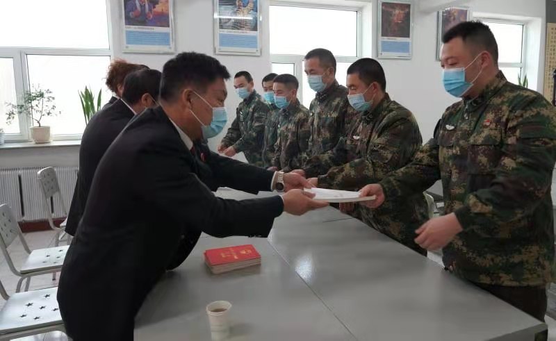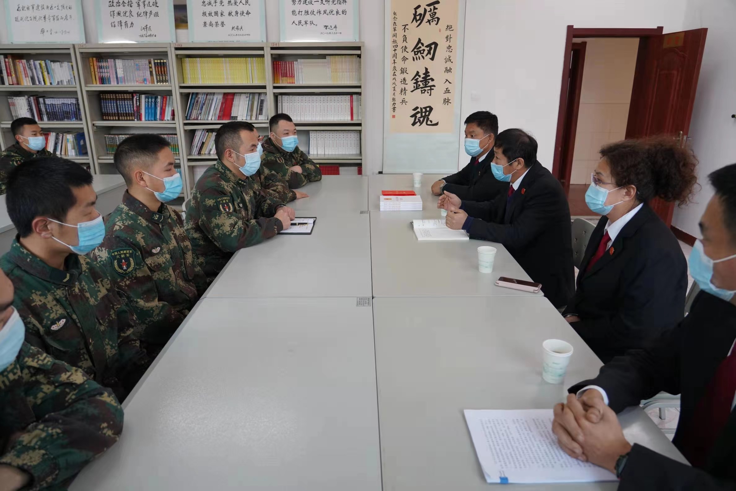 刘典国院长与连队的领导就开展“军院”联动工作进行了对接。针对连队常年驻守在三岔子林业局施业区内,连队训练、作业、生活离不开森林的实际情况,法官向官兵们宣传了《森林法》《森林法实施条例》《野生动物保护法》《国家野生动值物保护名录》等法律法规,探讨军地共同保护森林资源的有效途径,共同担负起保护绿水青山的重任。契合当前全民学习《民法典》热潮,法官向官兵们介绍了民法典的诞生历程、重大现实和历史意义,对民法典中的重点、亮点内容进行了讲解。结合部队官兵普遍关心关注的法律问题,进行了面对面的交流与咨询互动。鼓励官兵们尊法、学法、守法、用法,不断增强法律意识和法治观念,提高依法履职、依法强军意识。还向向官兵们赠送了《宪法》《民法典》书籍。