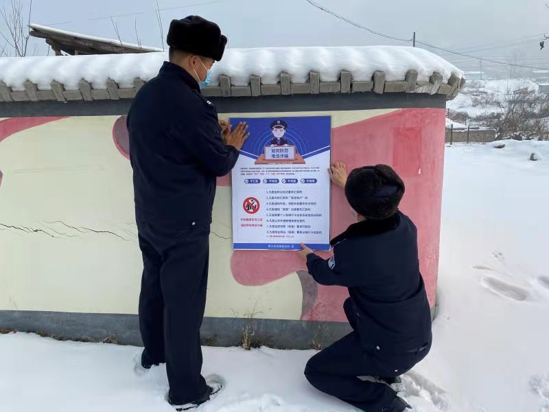 活动中,民警采用发放宣传单、张贴宣传资料方式,在居民休闲时段、人员密集场所、公示栏等地张贴宣传资料,现场解答居民提出的疑问,增强辖区居民抵制电信诈骗违法犯罪活动的“免疫力”。同时,通过组织民警、辅警、护边员向辖区村民微信群每日转发反电信诈骗典型案例、预防电信诈骗小贴士等提醒居民谨防被骗。
