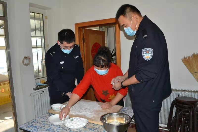 期间,民警带着汤圆和花灯来到周阿姨家中,大家一起挂起象征着吉祥如意的大红灯笼,一起包汤圆,气氛十分喜庆热闹。在欢声笑语中,一个个白白圆圆的汤圆摆满了桌面,大小均匀、外形饱满美观,随着清水下锅,汤圆如珍珠般浮上了水面,一碗碗象征着和睦团圆的汤圆就出了锅。大家吃着汤圆、唠着家常,在其乐融融的氛围中感受着节日的温馨。