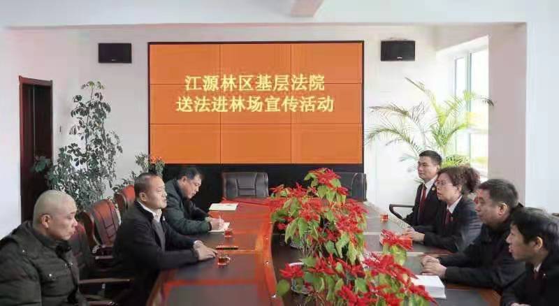 为贯彻落实全省服务企业大会精神,切实把服务企业发展落到实处,用心用力为企业办实事、解难题,加强林区法治社会建设,助力林区企业持续健康发展,4月21日上午,吉林省江源林区基层法院党组书记、院长刘典国带领干警到辖区国有大型森工企业吉林省三岔子林业局景山苗圃,开展服务企业法治宣传活动。 刘典国院长一行在详细了解了景山苗圃职工们的工作、生活情况后,针对《民法典》的颁布实施、民间借贷、房屋买卖、非法集资等热点法律问题和非法占用农用地、森林资源保护、森林防火等方面的法律知识深入浅出地进行了讲解,讲解内容将法律法规与实际案例相结合,深入百姓生活实际,受到企业和职工群众的欢迎。刘典国院长一行还深入到苗木种植基地,实地查看了苗木生长情况,还与正在地里工作的职工们一起参加了苗木换床劳动。