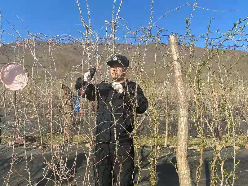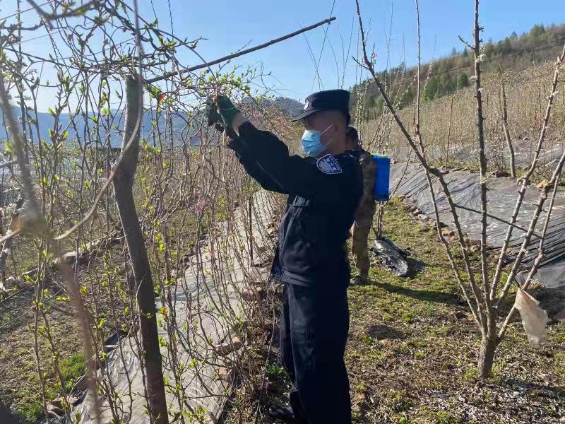 苇沙河村车大哥夫妻,家有八旬老母需要照顾,唯一的儿子在外地务工,家中的几亩五味子地位于半山腰上,路远且难行,当前是五味子剪枝和喷药的大好时机,可愁坏了他们。临江边境检查站助农服务队的到来让他们欣喜万分,民警同车大哥一起来到了五味子地中,戴上手套,拿起剪刀和喷壶,按照车大哥的方法,热火朝天的投入到工作当中。一拢拢的枝子被修剪整齐,一行行的果药被喷洒完成,看着车大爷的笑脸,民警们无比欣慰。