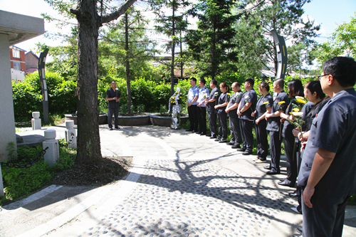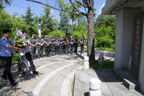 巍巍青山埋忠骨,朵朵鲜花祭英灵。6月24日,抚松县人民法院组织机关党员、预备党员及入党积极分子,来到位于东岗镇的王秀东烈士墓开展主题党日活动,此举进一步强化爱国主义和革命优良传统教育。 烈士虽然已经长眠地下,但他的精神将与青山同在,与日月争辉。抚松县人民法院党员代表向烈士敬献了花篮,每名同志又一一敬献了黄色和白的鲜菊花,并一同向烈士三鞠躬,深切缅怀革命先烈的丰功佳绩,表达无限哀思和敬仰之情。 “以建党百年为契机组织全体党员干警开展祭奠革命先烈活动,以此厚植爱党爱国情怀,不断强化宗旨意识的同时,进一步延伸‘我为群众办实事’实践活动载体,在筑牢政治忠诚的同时,努力打造一支党和人民信得过、靠得住、能放心的政法铁军具有十分深远的意义……”该院党总支书记、政治部主任鲍振国强调。