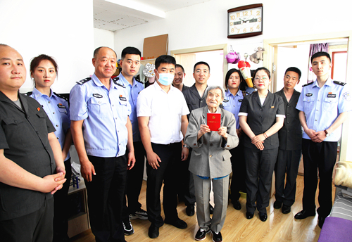 这是一次特殊而又难忘的主题党日活动。6月30日,吉林省抚松县人民法院组织在职党员、预备党员和入党积极分子,带着党旗、慰问品及节日的祝福来到了位于松江河林业局所属林业新村居民楼,走访慰问了85岁老党员王淑芳,在一片喜庆祥和的气氛中,共同庆祝建党一百周年。 “奶奶,这是建党一百周年纪念章,来我给您戴上……”那一刻,八旬老党员王淑芳激动地紧紧握住法官党员姚悦竹的手不放。在王淑芳老党员家里,党员干警们围在一起边翻看着老人各个时期获得的荣誉证书和自学党章等学习笔记,一边聆听老党员对党的深情与感怀,老人兴奋地说:“我永远拥护中国共产党,没有共产党就没有新中国,更不会有今天中国的繁荣富强,我要在有限的时间里抓紧学习,虽然我腿和胳膊时常疼得厉害,但当我全身心投入到学党章理论时,这些疼痛就全都忘了……” 据了解,王淑芳老人原是松江河林业局白西林场职工家属,从她年轻的时候就积极支持林场工作,生活中乐于助人,由于思想积极要求进步,个人表现突出,被林场干部职工推选为家属主任,主要为林场困难职工浆洗被褥,带领困难户搞生产自救,发展家庭副业,使许多困难户脱贫,曾被评为全省林业系统“月亮嫂子”荣誉称号。期间,王淑芳积极向党组织递交入党申请书,1989年她终于如愿地加入了中国共产党。到了1997年,60岁的王淑芳从她热爱的林场家属主任岗位上退了下来。多年来,老人还经常以党员的身份先后向亚运会、灾区等地捐款捐物,把对党的忠诚和对群众的关爱之情付诸于思想和行动中。 抚松法院在党史学习教育、“万警大走访”及“我为群众办实事”为民实践活动中了解到了王淑芳老党员的心愿后,院党组高度重视,决定派出一批机关党员干警去帮助这名老党员完成心中的夙愿。