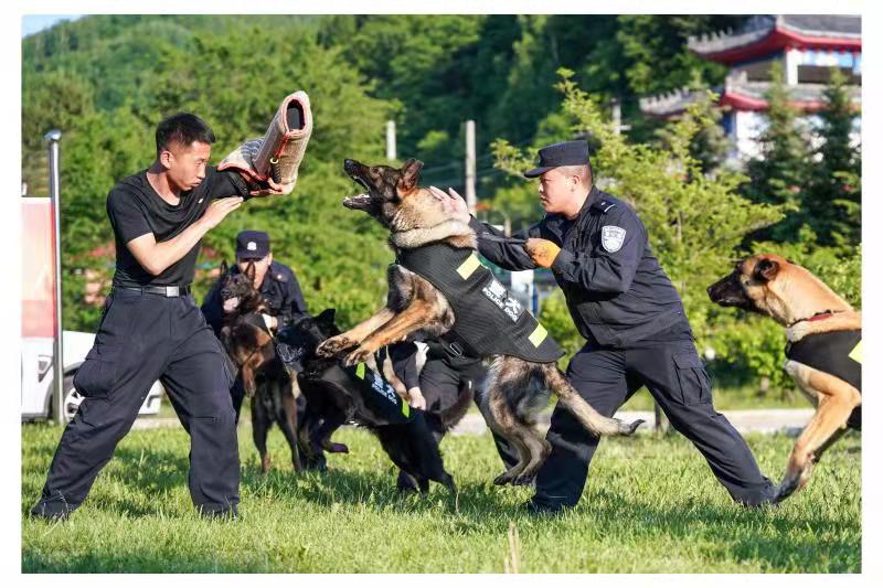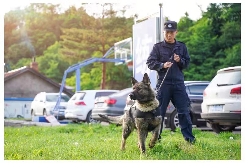 如何将这些可爱的“汪星人”训练成箱包搜毒、车辆搜爆、山地搜捕的高手?这就需要警犬与训导员日复一日的训练和密切配合。一条优秀的警犬背后,一定有一个优秀的警犬训导员。神情憨厚、皮肤黝黑的警犬训导员骨干王春雷,2016年当兵时就是一名训导员,转隶后2019年11月份又主动到哈尔滨训练基地学习了6个月,是名优秀的警犬训导员,曾在2020年3月荣获哈尔滨警犬训练基地专业知识竞赛中个人第一名,与警犬“黑曜”成为了“最佳搭档”。 只有经过长年累月的磨合训练,才能达到在任务中的默契配合。为了让警犬“黑曜”在实战中更好的发挥作用,王春雷总是比别人提前起床一个小时携犬进行强化训练,每天大多数的时间都和“黑曜”在一起。虽然每天一身脏衣服,沾满了狗毛,身上还有一股难闻的味儿,训练时还比较单调枯燥,但他还是一如既往地坚持下来,渐渐地他与警犬“黑曜”之间增进了信任感与默契度。警犬“黑曜”有着强大的咬合力、迅猛的攻击速度以及精确的攻击能力,天生就是当护卫犬的好苗子。“2米多高的围墙,一个借力就能跃过,奔跑速度能达到每小时40多公里。”王春雷直言,“黑曜”出马,光是看架势,就已对不法分子形成强烈的心理震慑,“黑曜”参与执勤500余次,在侦查破案中抓获犯罪嫌疑人4名,参加大型活动5次。