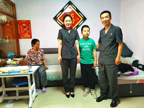 “小浩文真是太可怜了!不仅这么小的年纪指望不上爸妈,就连孩子的爷爷奶奶住的房子也是借的,好在祖孙仨人都有低保!孩子的愿望就是能有新衣服、新鞋子穿……”社区干部说。 县法院执行局法官干警在开展“十百千万”为民实践活动中,通过走访社区干部群众时了解到了小浩文情况,并向院党组做了汇报。最后经过研究,县法院本着群众无小事的原则,安排执行局党员干警为孩子选购了2套新衣服、新鞋子及学习用品送到家里,以此体现社会大家庭的温暖,于是事情便出现了开头的一幕。 “如果您和孩子对法律法规有需求就找我们……”在同小浩文及监护人交流沟通时,执行党员干警们详细了解了孩子的病情和生活学习情况,鼓励孩子要好好学习、增强信心、乐观向上,长大后成为一名对社会有用的人。同时以此为契机发挥“家事少年审判法庭”的普法辐射功能,用通俗易懂的语言针对电信网络诈骗、未成年人保护法及老人年权益保障法等与《民法典》息息相关的法律法规,通过案例的方式讲解给老人与孩子听,以此提高他们的法律意识,懂得用法律保护自身的合法权益免受侵害。
