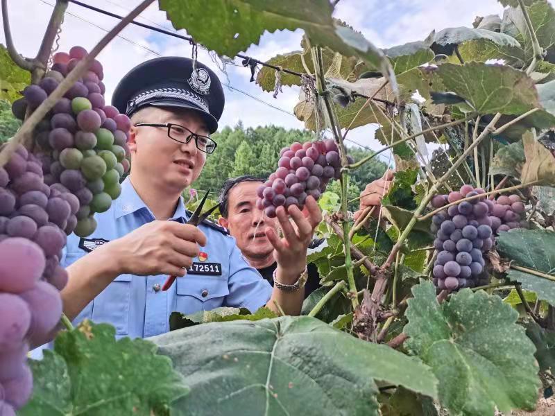 葡萄园的“操心人” “崔叔,你家这葡萄长势真好,一定要看好咱的果园子,网上销售一定要小心网络诈骗,拿捏不准的要提前和我们联系。”近日,临江市大栗子街道的葡萄陆续进入丰收季节,作为白山市有名的葡萄之乡,大栗子的葡萄享誉周边,外来采购、自驾游采摘人员络绎不绝。大栗子边境派出所民警针对辖区葡萄大量上市的实际情况,成立“助农服务队”。随着网络购物的快速发展,很多果农也开始了网络直播带货,民警在帮助果农采摘的同时,也有重点