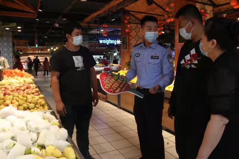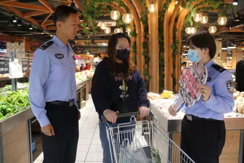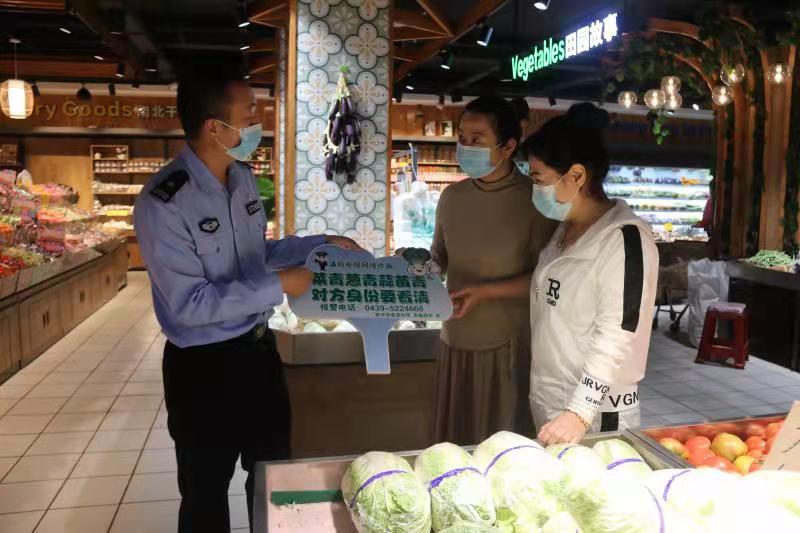 近日,吉林白山边境管理支队新市边境派出所探索反诈宣传新方法,在辖区大型超市的摊位旁张贴一条条诙谐幽默的反诈宣传“顺口溜”,在群众买菜的时候钻进“菜篮子”里。超市也一跃成为了新的反电信诈骗宣传基地,借着“菜篮子”守护好“钱袋子”,让反诈元素时刻围绕在群众身边。
