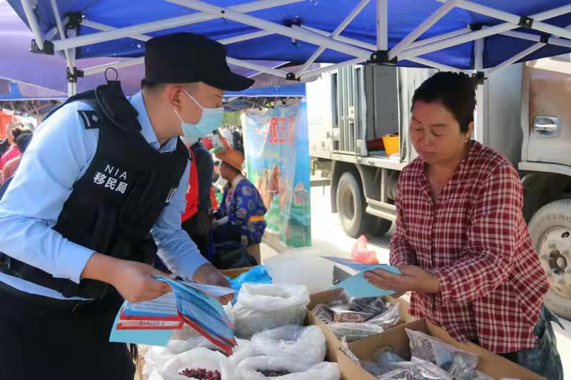 为进一步提升辖区边民遵守边境政策法规意识,近日,吉林白山边境管理支队新市边境派出所开展“边境法律法规宣传”活动。 活动中,民警们深入辖区集市等人员密集场所,积极讲解了《吉林省边境管理条例》《治安管理处罚法》等相关法律法规,重点对与边民群众密切相关的边境法规及典型案例进行现场讲解,同时,现场为群众解答疑难问题,并发放了印有边境法律法规的手拎袋,手电筒等宣传品。通过活动的开展,进一步提升了边民群众的知法、守法、用法意识,做到贴近群众,最大限度地发挥宣传教育作用。 “今天真是了解到了很多以前不知道的边境法律法规,而且民警发放的宣传很实用、很贴心,让我们在生产生活过程中提醒我们遵守边境法律法规的意识。”现场群众满意的说。 |
