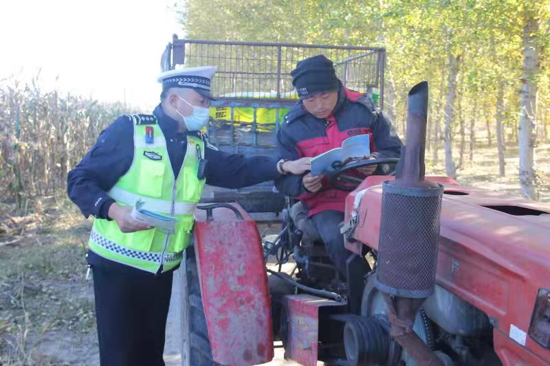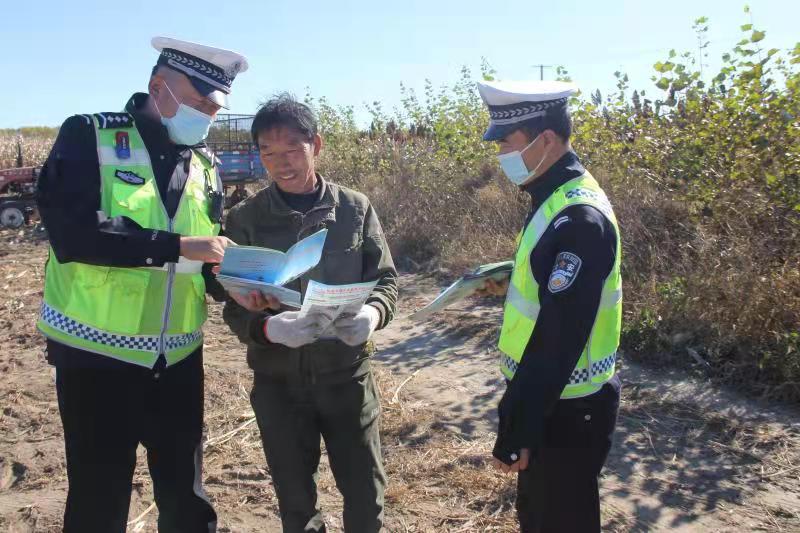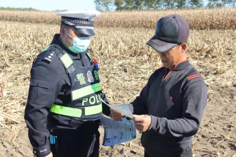 为进一步增强广大农村群众的文明交通安全意识,共同维护辖区良好的道路交通环境。10月11日,乾安县公安局交通管理大队,结合“减量控大”工作、“一盔一带”安全守护活动、“百日攻坚”行动和老年人交通安全宣传工作,深入农村开展交通安全宣传教育活动,把交通安全出行知识送到群众身边。