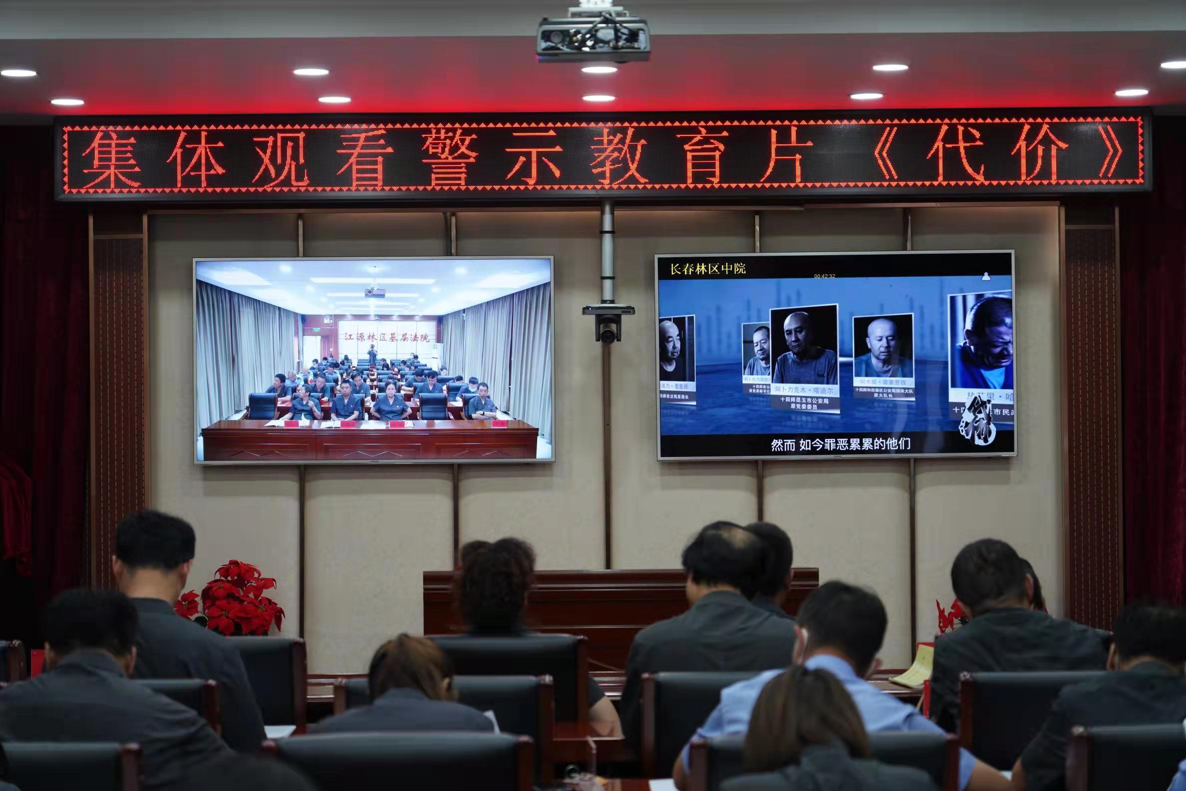 为树立正确的人生观、价值观,防止法院干警触碰腐败红色底线,从思想上、组织上、工作上彻底肃清流毒影响,10月22日上午,江源林区基层法院组织全院干警观看警示教育片《代价》。 警示教育片《代价》,通过讲述典型违法违纪案例,深入剖析原因,以案为鉴、以案明纪,引导党员干警不断加强党性修养和党性锻炼,筑牢拒腐防变的思想道德防线。《代价》是对全体干警的一种思想鞭策,更是匡正干警行为、严肃纪律作风必不可少的一剂“预防针”,告诫干警要牢固树立理想信念,自觉抵制和远离人情、金钱的诱惑,树牢正确的人生观、价值观。 通过观看警示教育片《代价》,干警们受到了一次深刻的思想洗礼。大家纷纷表示要汲取深刻教训,坚定反腐倡廉的廉洁自律之心,以片中的反面典型为例,做到“照镜子”“量尺子”,时刻保持清醒的头脑,绷紧反腐倡廉的“这根弦”。大家纷纷表示,在今后的工作中,要锤炼忠诚、干净、担当的政治品格,永葆清正廉洁的政治本色,自觉抵制各种诱惑,坚守理想信念、恪守政治规矩,讲大局、讲原则,把党风廉政建设贯穿于组织工作的始终,真正做到“讲政治、强党性、严纪律、守规矩”,做一名“忠诚、为民、公正、廉洁”的好法官。 |