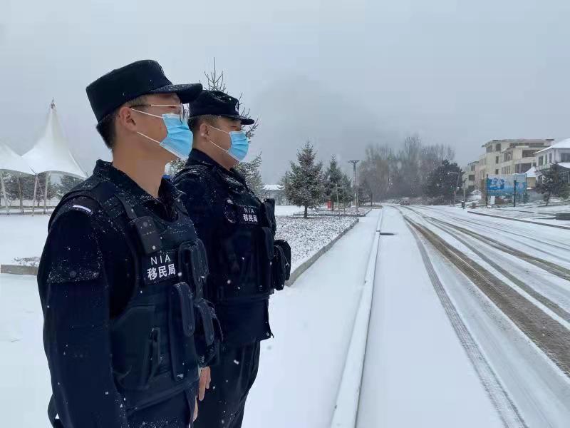 11月21日,吉林省临江市普降大雪,给人们带来喜悦的同时,也给出行的群众带来了极大的不便。吉林白山边境管理支队苇沙河边境派出所全体民警在岗在位,战雨雪,保安全。 期间,该所民警启动恶劣天气应急预案,以“雪”为令,全员上路,采取车巡步巡相结合的方式,提醒广大出行群众注意交通安全,指挥过往车辆减速慢行、安全通过,加大路面巡逻管控力度,及时排查和消除安全隐患,预防道路交通事故的发生。 温馨提示:车辆在驶进急弯、桥梁等风险的路段时,应当减速,不要随意变道、超车,不要急打方向,避免急加油,急刹车,遇紧急情况应保持冷静,以免发生交通事故。 |