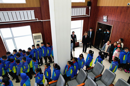 现场,在法官的带领下师生们先后参观了犯人羁押室及审判、原被告、公诉机关、律师、人民陪审员等各个审判席位,认真观看了解法庭审判各个流程。这时,大庭里响起了法庭每次开庭前都要播放的法庭纪律广播,随着恢弘有力的广播声音在大庭里此起彼伏,让参观气氛观变得更加严肃而有序。