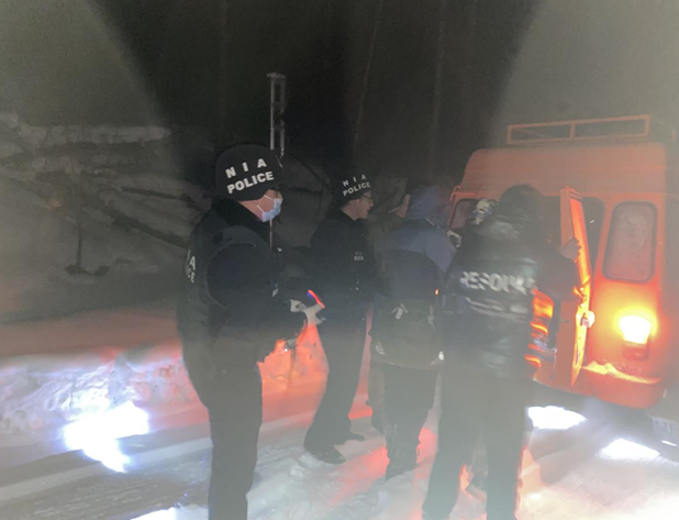 20时56分,民警返回检查站后,重新梳理掌握线索,通过监控分析车辆牌照信息后,确定此车即为报警人所驾驶车辆,此时据接警时间已近三个小时,考虑到山区高海拔高寒地形的严峻自然环境,以及受困人员在极端条件下的身体状况,民警迅速联系当地林场,借用救援车辆再次进山搜寻。 21时55分,由于山区积雪过于深厚且道路通行条件极差,救援车辆也无法继续前行,民警本着人民生命安全至上的根本原则,不惧严寒继续开展步行搜寻。步行搜寻半个小时后,终于找到受困四人,此时四人已近10小时未进食,车辆无法启动后仅仅依靠微弱的火堆取暖,手机无信号无电量无法与外界联系,饥寒交迫以及对陌生环境的恐惧让四人精神状态处在崩溃的边缘,民警询问查看四人身体状况无碍后,便护送受困群众乘坐救援车辆返回。送返途中了解到,一行人是外地建设公司员工来此处勘探,因不熟悉地形环境和气候条件未做好充分上山准备导致受困,四人激动地表示“看见了人民警察就像看见了亲人和希望,实在是太感谢你们了”。