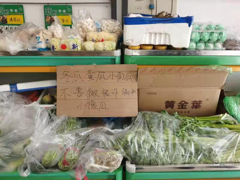 “冬瓜黄瓜小南瓜,不要做被诈骗的小傻瓜”,摊位上的“萌味”标语吸引了正在买菜的居民。“这些标语太吸引人了!一开始以为是贴的标签,凑近看才发现是反诈标语,买菜的时候就能记住这些防诈骗知识,这样的宣传很接地气。”