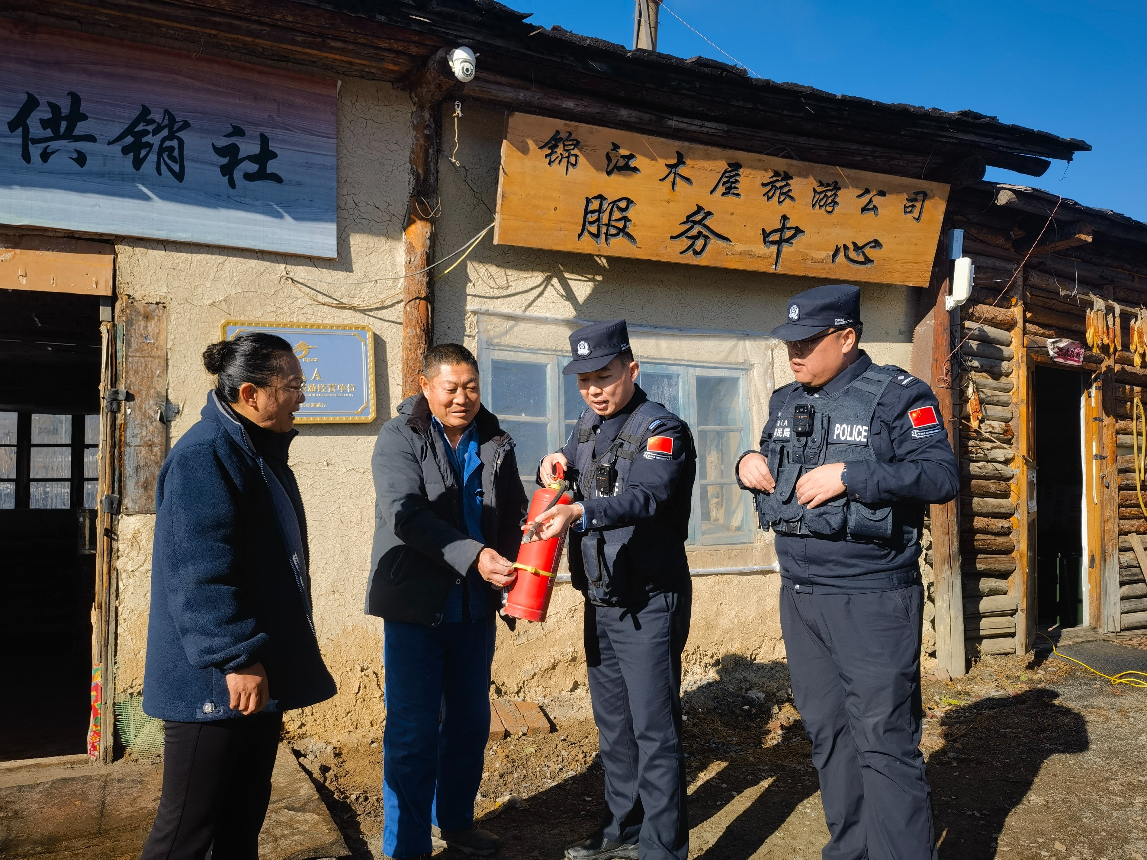 依托村内闲置民居改造建成“边境警务服务站”,整合户籍办理、纠纷调解、安全宣传、应急救助等多项功能,为村民和游客提供“一站式”服务。针对老年人、留守儿童等特殊群体,推出“上门办、代办”服务,民警定期进村入户办理身份证、户籍迁移等业务,每年累计上门服务超50人次。同时,发动村民中的党员、退役军人、致富带头人组建“长白山义警”队伍,开展日常巡逻、隐患排查、游客引导等工作,形成“民警主防、义警协同、全民参与”的共治格局,让平安成为木屋村最坚实的底色。 警务创新护发展,筑牢安全防护网 结合木屋村木质建筑密集、游客流量大的特点,漫江边境派出所创新推出“定制化”安防服务。组织民警深入每家民宿、商铺开展消防安全检查,免费发放灭火器、烟雾报警器等消防器材,指导经营者制定火灾应急预案,每月开展1次联合消防演练,提升应急处置能力。