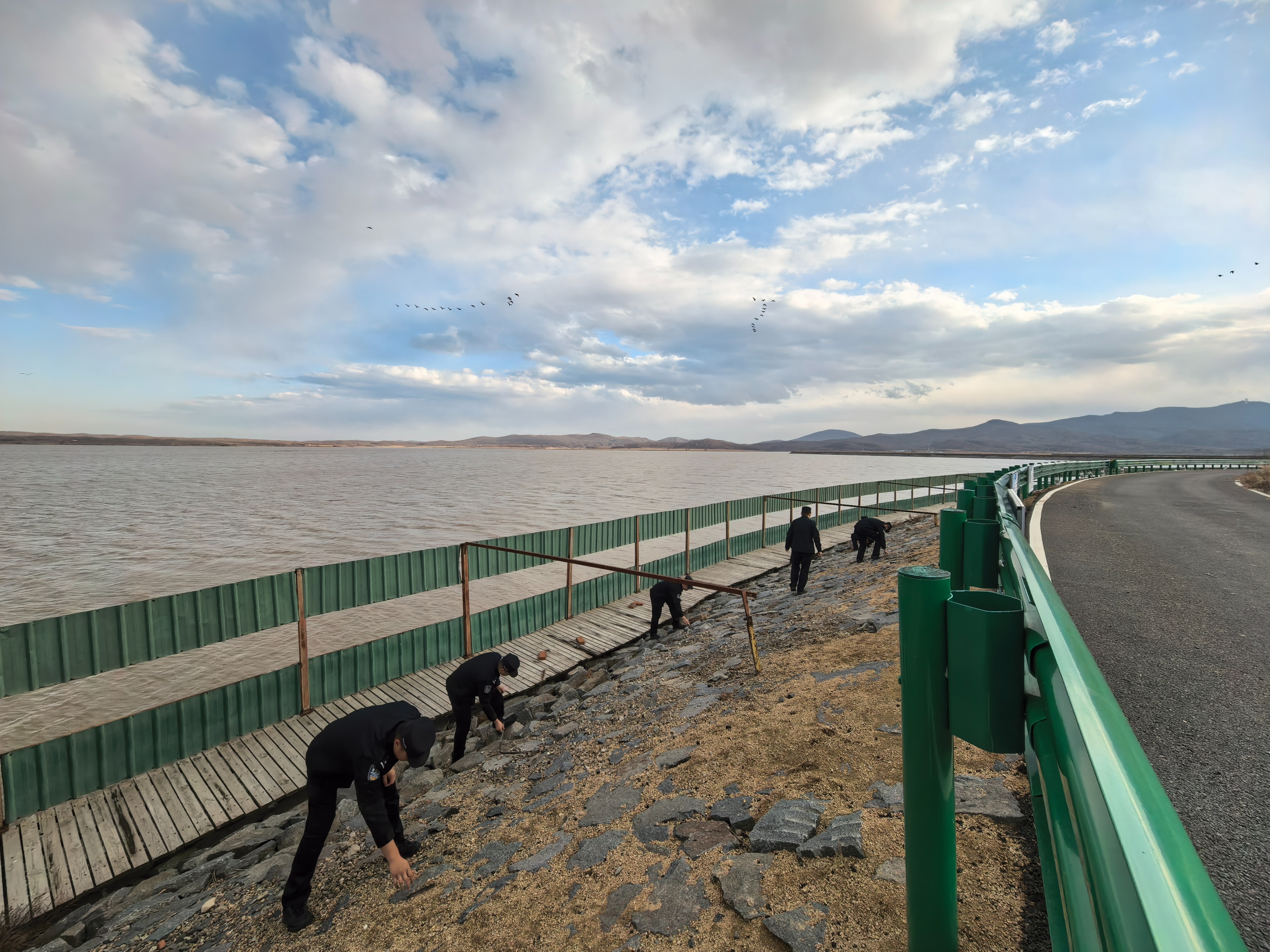 敬信湿地,不仅是西伯利亚候鸟南迁进入中国的 “第一站”,更是边境生态防护的关键区域。自五年前首次启动候鸟保护专项行动以来,圈河边检站便将这份责任刻进日常 —— 每年春秋两季候鸟迁徙关键期,专项防护行动都会如期展开。今年 10 月中旬候鸟陆续飞抵后,该站再度升级防控举措,巧妙将边境巡逻与候鸟保护有机融合:抽调精干警力组建 “护鸟巡逻队”,沿着湿地周边的边境线、口岸连接线开展不定时巡护,重点排查非法猎捕工具、劝阻违规进入湿地的人员车辆,同时细致清理游客遗留的垃圾杂物,只为给候鸟营造一处安全、洁净的栖息家园。 “湿地周边芦苇茂密,部分区域紧邻边境线,五年来,我们始终既要筑牢非法越界的‘安全防线’,也要守住候鸟不受伤害的‘生态防线’。” 巡逻民警冯麟祥介绍道。针对龙山湖、稻田湿地等候鸟集中区域,民警们在五年实践中不断优化巡护方式,如今已形成 “徒步巡查 + 无人机航拍” 的立体巡护模式,每周至少开展 3 次全覆盖排查。五年来,累计清理破旧渔网、塑料垃圾等隐患物品超百件,劝离违规靠近候鸟栖息地的摄影爱好者、游客近百人次;仅今年行动启动至今,便已清理隐患物品 20 余件,劝离违规人员 12 人次,有效规避了人为干扰对候鸟的影响,让候鸟能安心在此停歇。