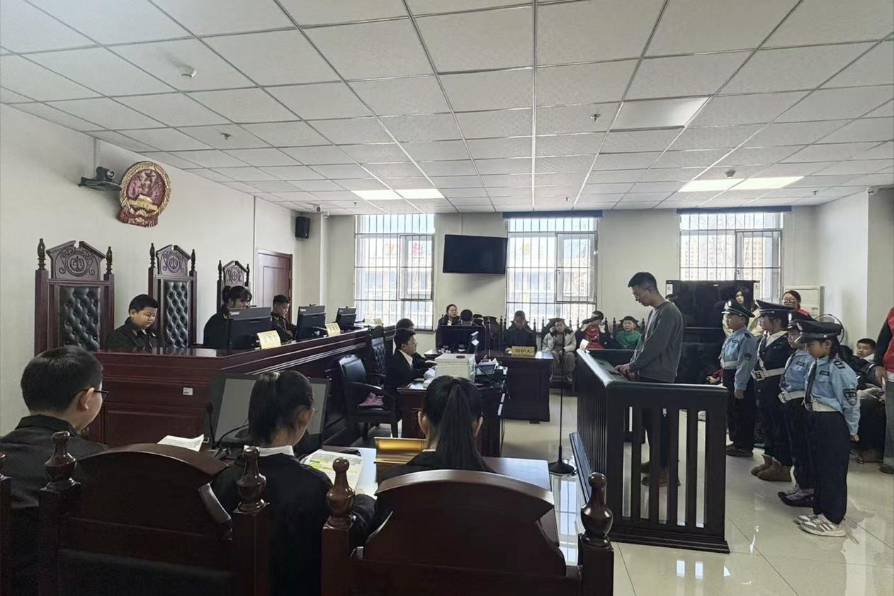 参观结束后,法院特意安排同学们观摩了一场危险驾驶罪庭审。庭审现场庄严肃穆,法官依法履职,清晰查明案件事实、核实证据,控辩双方围绕案件焦点有序发表意见,详细阐述危险驾驶行为的危害后果。同学们端坐于法庭旁听席,目光聚焦于庄严肃穆的审判台,深刻认识到酒驾、醉驾等危险驾驶行为对个人、家庭和社会的严重危害,将法治敬畏之心根植心底。 模拟法庭,感受司法威严