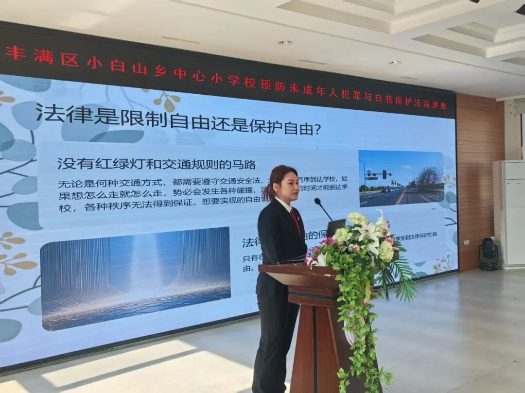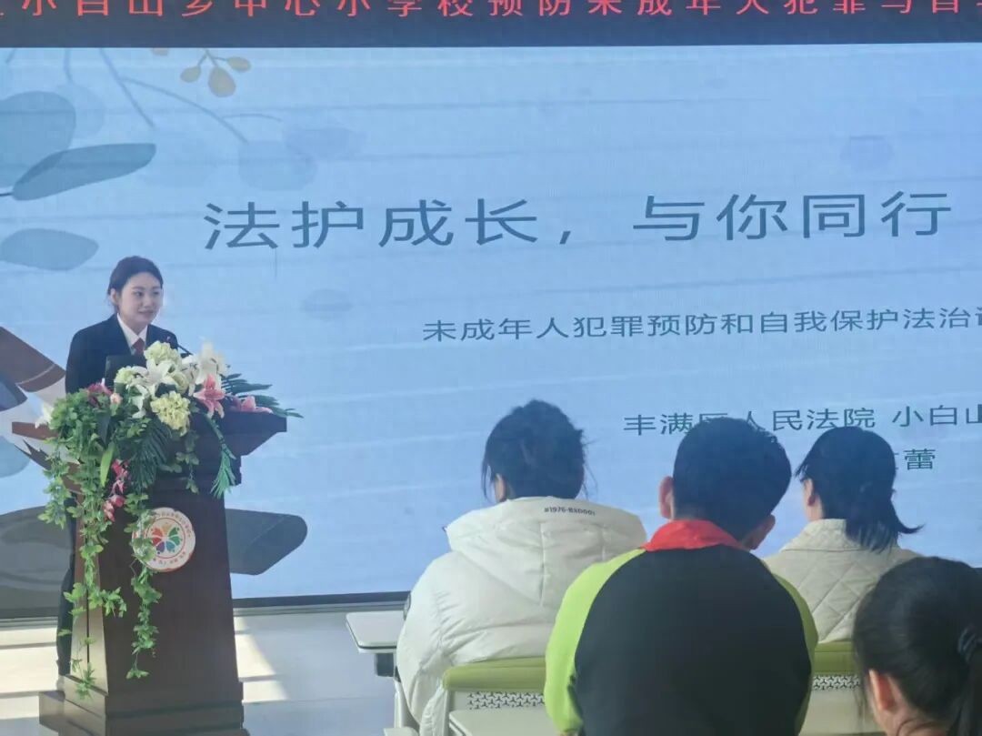 为切实加强未成年人法治宣传教育,提升青少年自我保护意识与法治观念,从源头预防未成年人违法犯罪及校园欺凌发生,近日,吉林市丰满区人民法院小白山人民法庭走进丰满区小白山乡中心小学校,为学生们带来一场以“未成年人犯罪预防与自我保护”为主题的专题法治讲座,以司法力量为乡村青少年健康成长保驾护航。