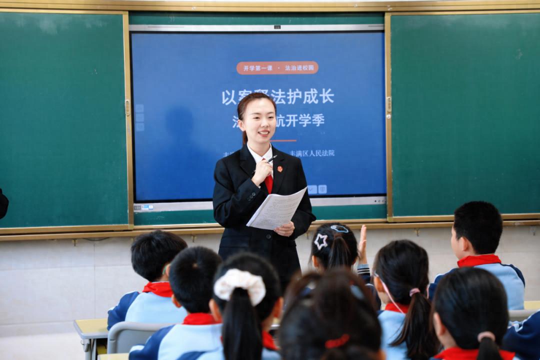 法暖青禾,护航成长。新学期伊始,为切实加强青少年法治教育,提升未成年人法治意识和自我保护能力,营造安全、和谐的校园环境,吉林市丰满区人民法院与吉林市丰满区人民检察院联合行动,走进丰满区第一实验小学,为同学们带来了一堂生动、精彩的“互动式”法治宣讲课。