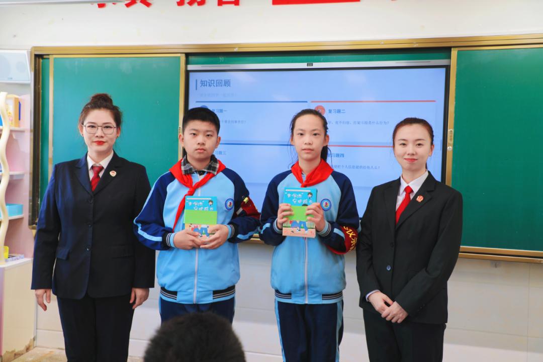 为持续助力校园法治建设,还现场向学校捐赠了两套青少年法律知识图书,由学生代表领取。活动最后,区关工委领导、法检干警与学校师生合影留念,共同定格了这份法治护航成长的画面。