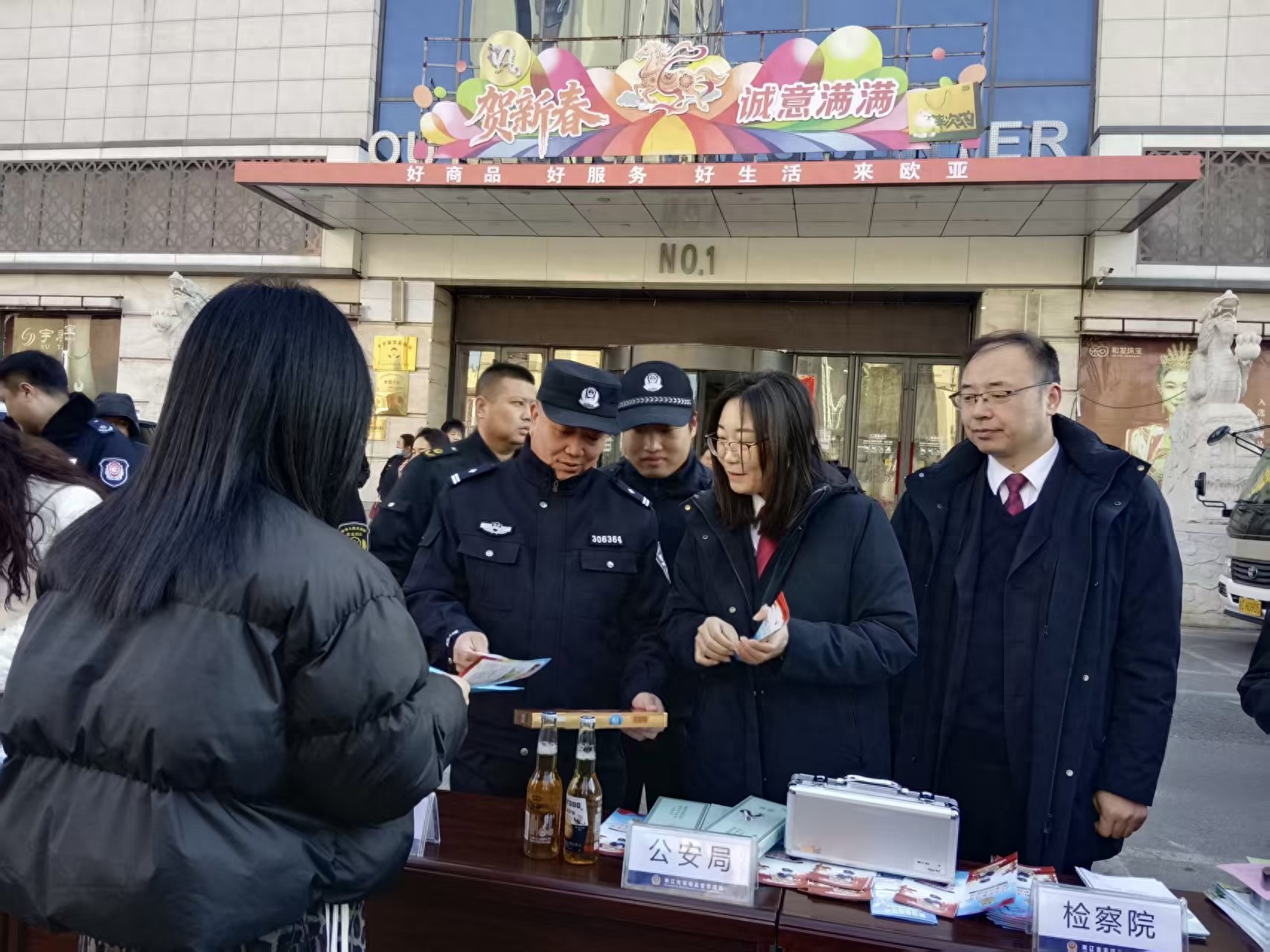 为切实维护消费者合法权益,筑牢民生消费法治防线,近日,双辽市人民检察院联合该市市场监督管理局、公安局、烟草专卖局、农业农村局等多部门,以“法治护航消费,检察守护民生”为主题,先后在该市欧亚商场门口、双辽市大集开展普法宣传活动,将消费维权法律知识送到群众身边。 活动第一站,各部门在欧亚商场门口联合设立宣传点位,检察干警与执法人员一同向商户和消费者发放宣传手册、现场答疑解惑,普及《中华人民共和国消费者权益保护法》《中华人民共和国民法典》等法律法规。此次发放的宣传手册内容涵盖检察履职范围、消费维权知识、食品药品安全提示、举报投诉方式等实用内容,通俗易懂、便于携带,有效帮助群众提升识假辨假与依法维权能力。