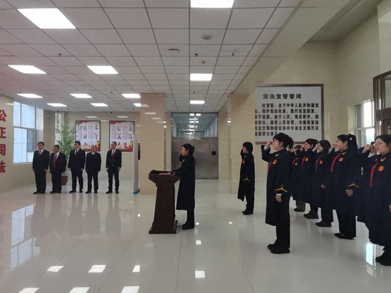 “我宣誓,忠于中华人民共和国宪法,维护宪法权威,履行法定职责……”在领誓人孙扬的带领下,全体女法官身着法袍、佩戴法徽,面向国旗高举右拳,字字铿锵。誓言声中,是对法律的敬畏、对职责的坚守,更是她们扎根司法一线、服务基层百姓的郑重承诺。