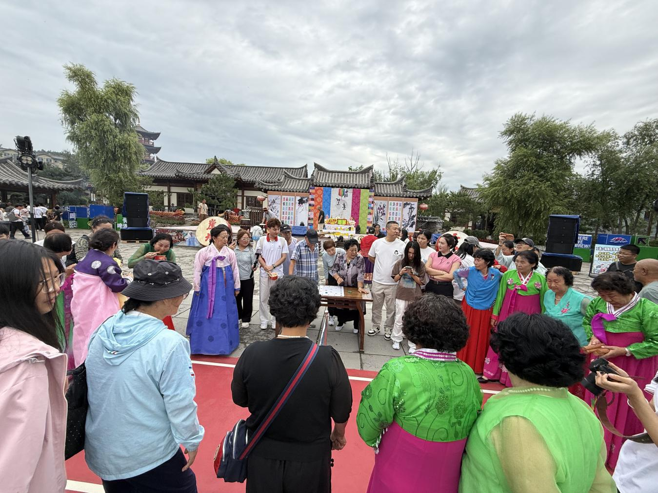 为全方位展现县域深厚民俗文化底蕴,持续推动“文旅+民俗”融合发展,打造长白县文旅IP,提升长白县旅游知名度和影响力。8月16日,长白县举行“醉美边城 灵秀长白”民俗文化旅游节启动仪式,这场融合民族特色与地域风情的文化盛典,拉开了长白县为期一个月的民俗文化旅游节序幕。 “多彩长白·魅力民俗”千年崖城民俗体验活动,以活动突显长白文化特色。16日上午10时,众多市民游客齐聚千年崖城风景区西京门翘首以待,随着古老城门缓缓开启,一场活力四射、充满民族风情的舞蹈快闪表演率先登场,演员身着绚丽服饰,以灵动轻盈的舞姿传递着喜悦,瞬间点燃现场气氛,围观群众的欢呼声此起彼伏。随后进行的朝鲜族婚庆巡游仪式热闹非凡、格外吸睛,巡游队伍宛如一条流动的风景线穿梭在景区内,游客们踊跃化身“婚礼宾客”观礼、互动,沉浸式感受独特婚庆文化与喜庆氛围,个个兴奋不已。