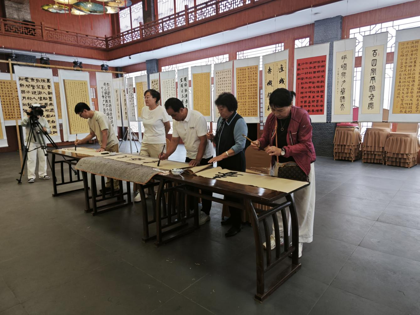 传统游戏区同样人气爆棚。作为朝鲜族传统民俗游戏的掷柶,充满趣味性与技巧性,玩家投掷柶木决定胜负时,每一次动作都伴随着紧张气氛与观众的呐喊助威,人们在欢乐中,深刻体会到朝鲜族传统文化的深厚底蕴。在非遗技艺展览区里,传统剪纸、石雕、木瓢画等作品琳琅满目。非遗传承人现场演示制作过程,让老祖宗的“隐藏技能”生动展现,不少人化身为非遗“追光者”,近距离感受非遗文化的深厚底蕴,仿佛穿越时空与历史展开亲密对话。民俗活动还设置了诸多惊喜环节,为这场民俗盛宴增添了更多色彩。普法宣传展位前人头攒动,工作人员热情普及法律知识并派发神秘小礼物,让人们在轻松氛围中学习法律;“衙府的日常故事”互动环节备受欢迎,游客化身断案“小能手”,在参与有趣案件的过程中,增强了法律意识。 “笔墨书初心·共建促发展”书法展活动,以艺术诠释长白人文精神。书法展也是本次民俗节的一大亮点,来自全县各界优秀书法家们聚焦交通强国与传统文化精心创作属于自己的书法作品。一幅幅作品高高悬挂,将展厅墙壁变成了艺术墙,吸引了很多市民游客前来打卡拍照。来自沈阳的游客张女士来到展厅漫步欣赏完书法作品后说:“没想到会在景区里看到这么优秀的书法作品,在民俗文化旅游节上设置书法展我觉得十分有新意,这能够让我们现场感受笔墨之美与文化传承。”